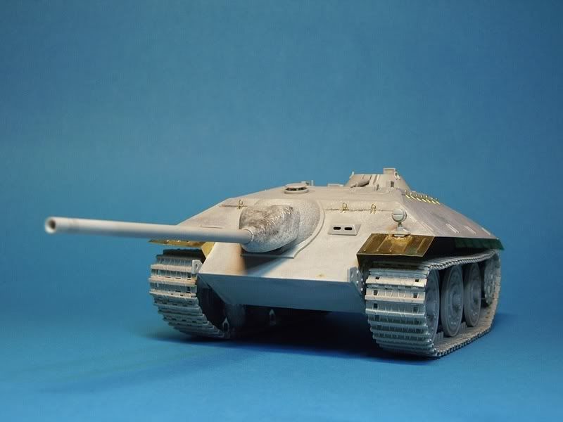 The tracks needed a lot of work getting rid of all the pin marks. I don't know, they look a bit nasty at some places. They were hard to force together so it left some bad areas when being bent around the wheels and it seems as if they went apart somewhat when drying. What do you think, should I keep the current setting or use rubber bands? I might just paint and weather the one piece tracks anyway, just for safety and comparison.