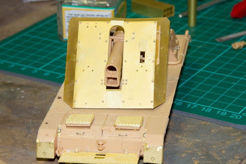 here's my current build in progress. Nice kit by Trumpeter, a lot of PE (I didn't replace the sides because the plastic was too fragile, still it's very thin, PE is not an obligation), metal barrel, etc... Having a lot of fun with it. BTW, I do not own a PE-bender, I did my best to bend it correctly and I(m quite happy with the result, it gives the shield a good look, as if it had been under rude conditions on the terrain...