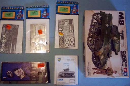 Last Christmas, the president of our model club gave me an old Tamiya M8, with the proviso that I finish it in one year. So everything else is now on hold while I start, and hopefully finish, this kit in the next two months.