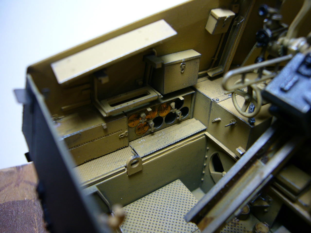 As you will appreciate, I have painted the model in several tempi. The fighting compartment is all but finished and just lacks installing the radio and antenna.