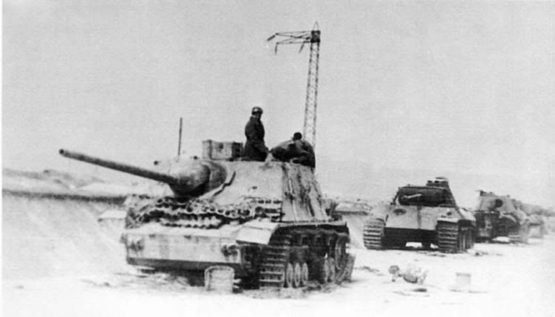 The fourth photo is very interesting and makes me realise what for the extra bow hooks could be - to enable a Bergepanther to tow this vehicle.