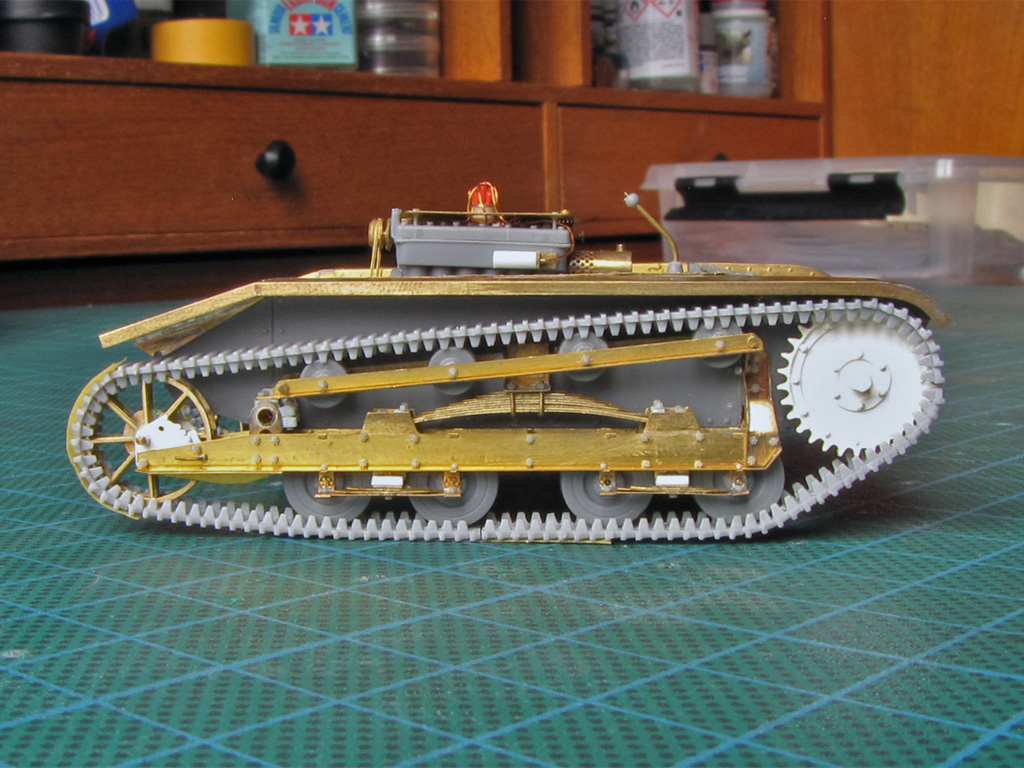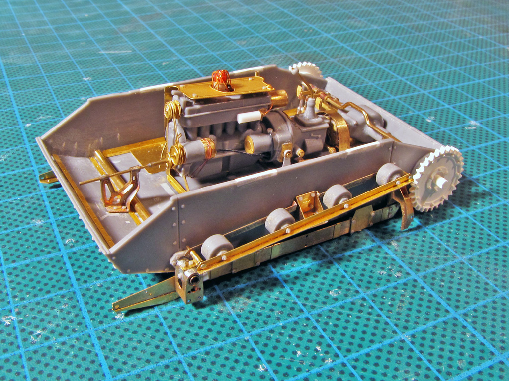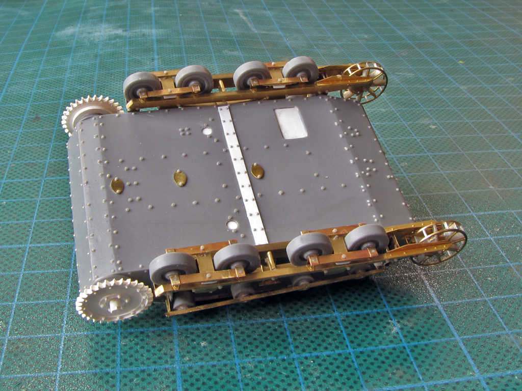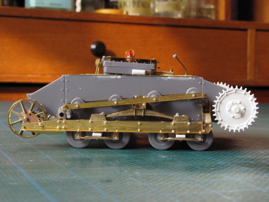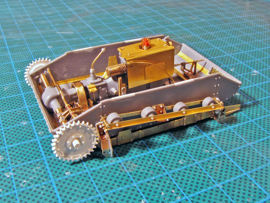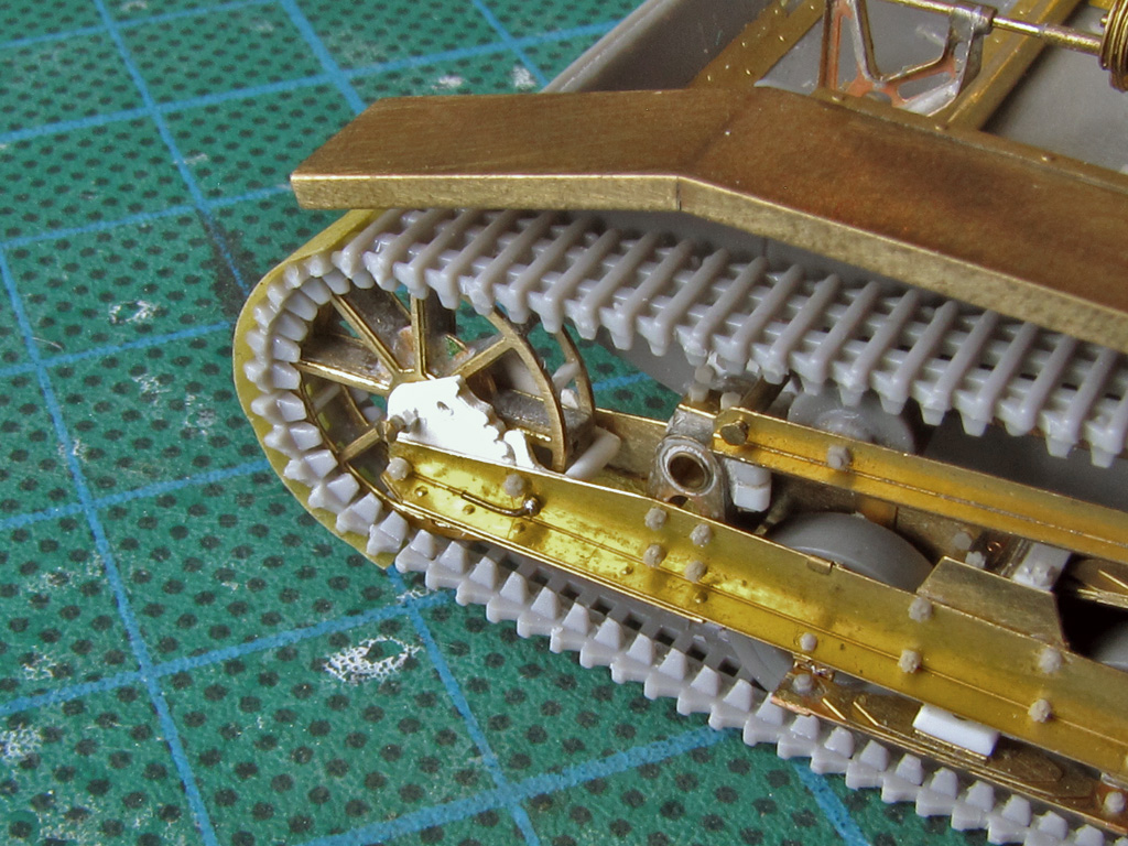 As mentioned before, the track of the IBG kit is wrong so I had to seek for an alternative. I decided to use tracks from RPM kit and due to poor quality had to source them from two separate kits. Tracks are molded in sections and are quite fiddly to assemble. Guide horns have to be cut thinner as well to fit wider IBG's road wheels.