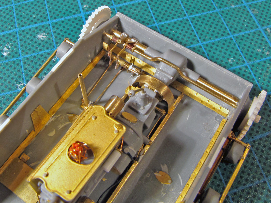 Idler wheel sitting too high still bothered me too much, so I carefully detached the idlers and rebuilt the tensioning mechanism. This time I used kit parts, but had to clone these as one sprue containing needed details were missing in my kit. Well, now the Idler sits about 1mm lower than before and seems much better.