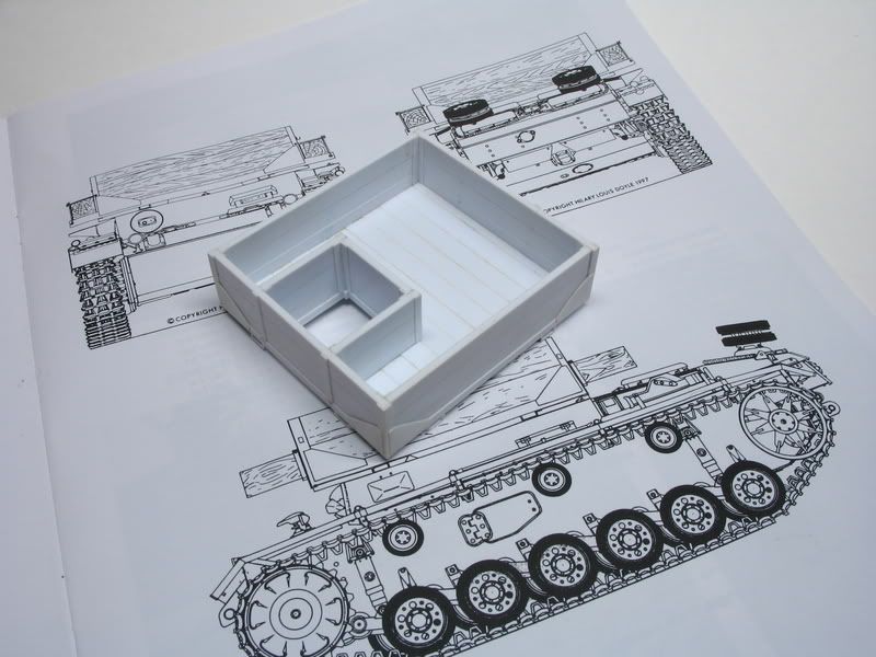 I didn't like the included resin box so I built a new one out of styrene according to the plans in Panzer tracts 16: