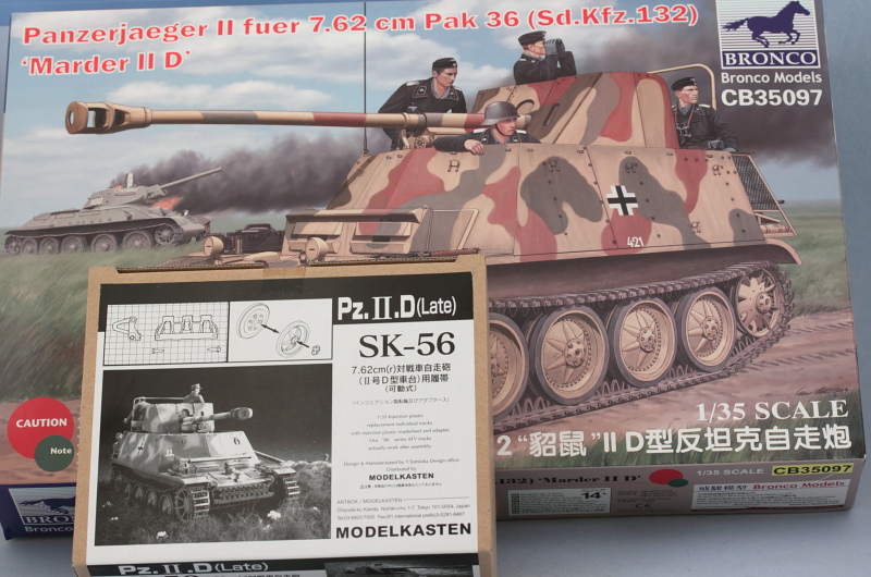 Time to clear the bench and get the next victim ready. This build log will feature Bronco's kit #35097 Panzerjager II 7.62cm Pak 36 (Sd.Kfz.132) Marder II D paired up with a set of Model Kasten SK-56 workable tracks.