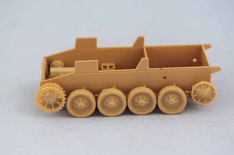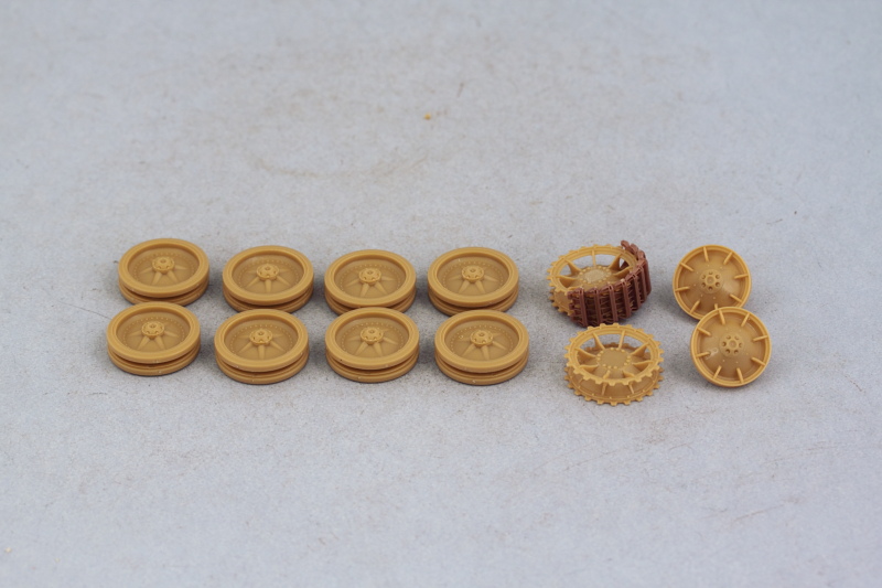 The sprockets assembled easily and I used a run of 10 links from the MK set to ensure the sprocket teeth lined up correctly and would play nice with the tracks later on. That same run was used to test the gap fit on the road wheels as well as the idlers. On the idlers, the front half has small tabs that are supposed to fit into the back halves but the tabs are too tall and have to be trimmed down to all the front half to fit flush at the right gap interval.