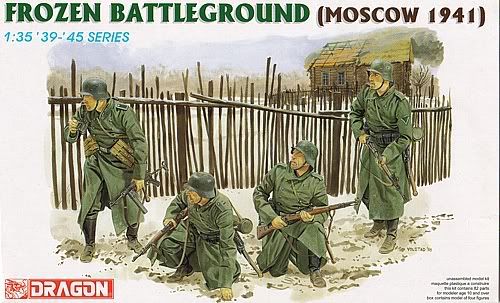 I was very happy at the end of the project after having spent 3 weeks on the mud effect alone! I used the Frozen Battleground Moscow set from DML and would recomend them especially for their 3d molded great coats.