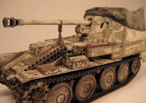 Hello, I have been a avid "reader" of the forums but not much of a contributer for some time now, this is my first post. I am mostly a devout figure painter and like to do armor as a break from the figures from time to time. This Marder is my third vehicle I have done and felt I had one that was finally worthy of posting on the forum. Please feel free to critique and comment as needed. It is the intial Marder IIIG from Dragon. I have added a Mig cover and armorscale barrel, the rest is OOB. I have been wanting to try the hairspray method for a while now and after seeing Michael Rinaldi's version of it on this vehicle I gave it a try!