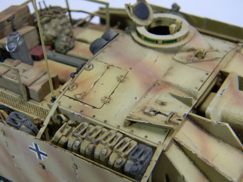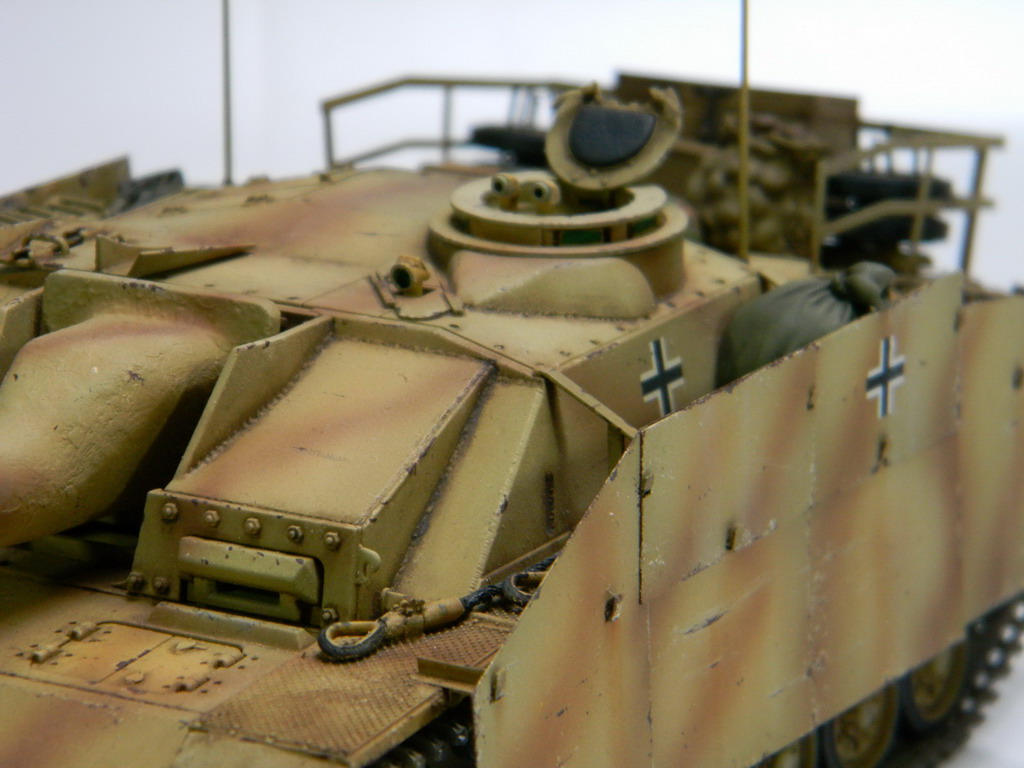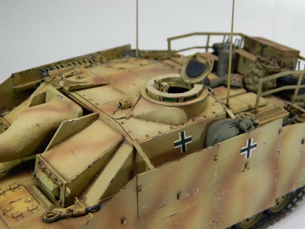 Like to show you my StuG III from Alkett, september-production ´43. Basis is Tamiya, with some PE´s and aftermarkets parts. Ok, the helmet with cover is wrong, because it´s a SS-cover. i´ll remove it.