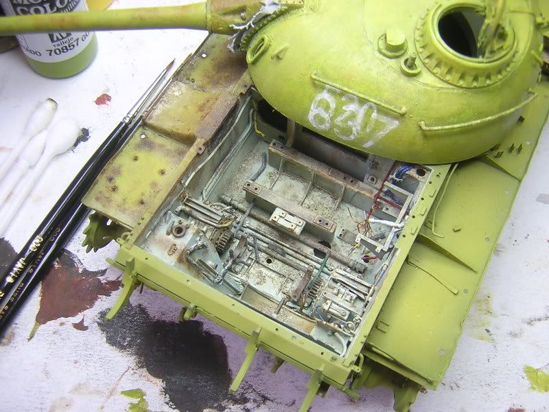 Here the engine bay has been finished, and the turret numbers applied and faded