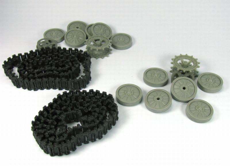 The wheels and tracks I showed in the photo above, were cleaned and made ready to be assembled. As the tracks are clickable, I attached individual tracks to eachother easily.