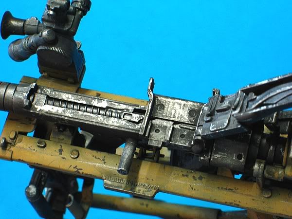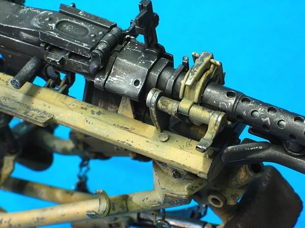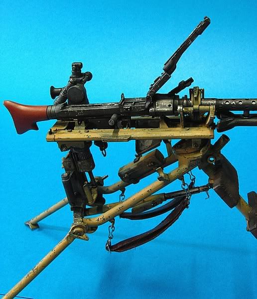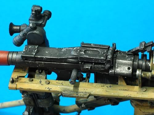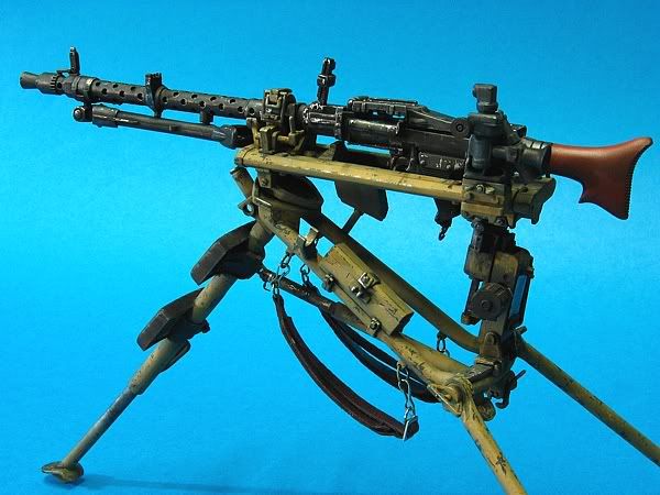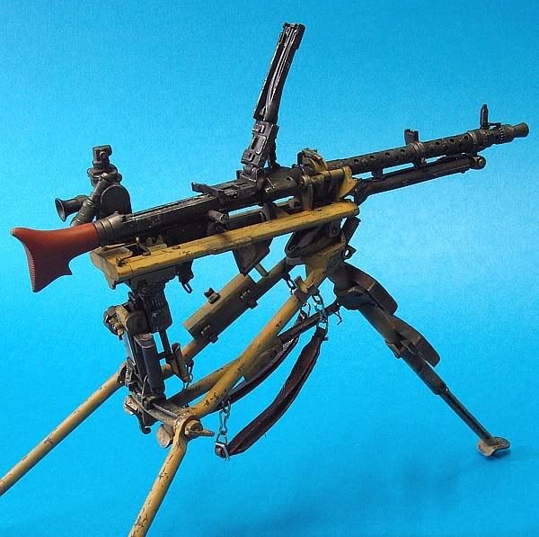 This is a bit unusual but it is made of metal and does get mounted in a Panzer. This was given to me by a modelling Buddy [and a fine modeller himself] who had it as a spare and gave it to me- very generous, as I understand that they are hard to get. This started as a clear plastic pre - built plastic replica. A clean pallette and a wonderful subject just to paint and have some fun. All functions operate , open, close and move. I now have it as a great MG34 reference. Good for ref detailing those little brothers in 35. It stands 6and a bit inches high and 10 inches across the base!