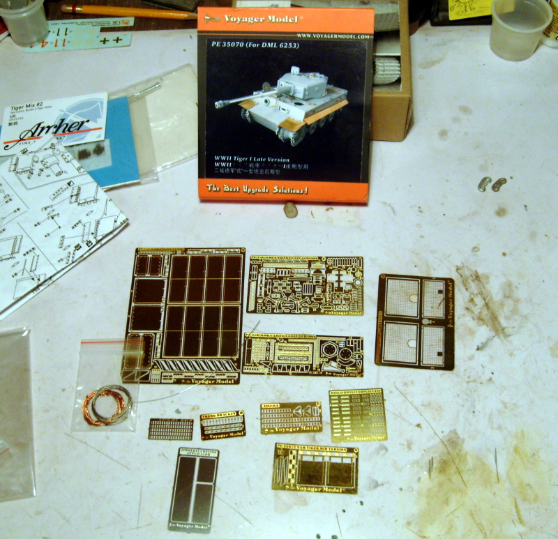 I started my new proyect with Tamiya, 1/35 and "adds-on": Voyager PE's, Tracks of resin from Lion Marc, hooks and some tools of J. Peddinghaus, Archer transfers and barrel gun metal of Jordi.