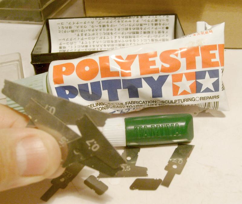Preparing the way for applying the Zimmerit. I will use the tools and the Polyester Putty of Tamiya , both are an excellent resource. Filling the holes before to assemble the tools with Photoetched.