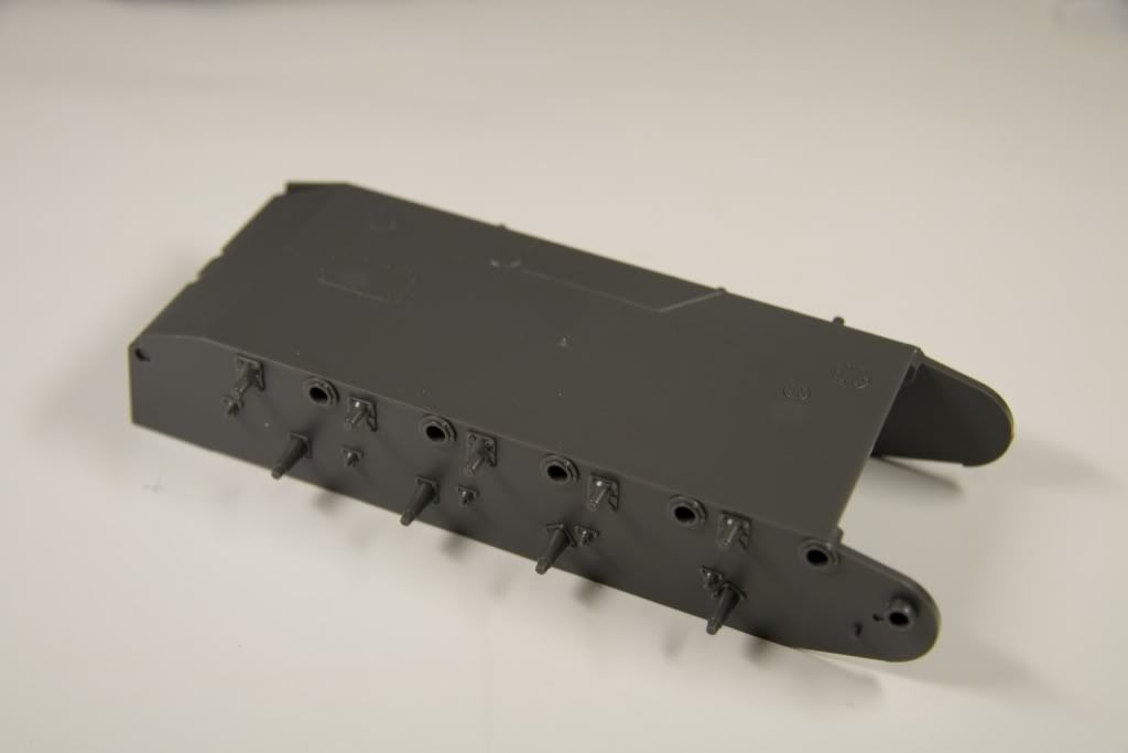 Sprue E and G - rear plate, smoke candle rack, front armour and add-on armour