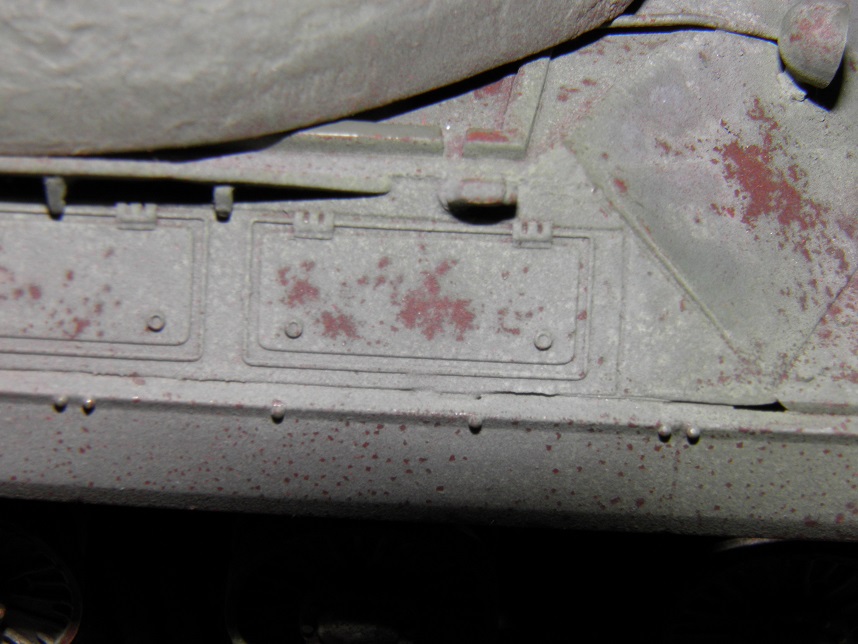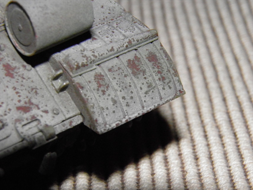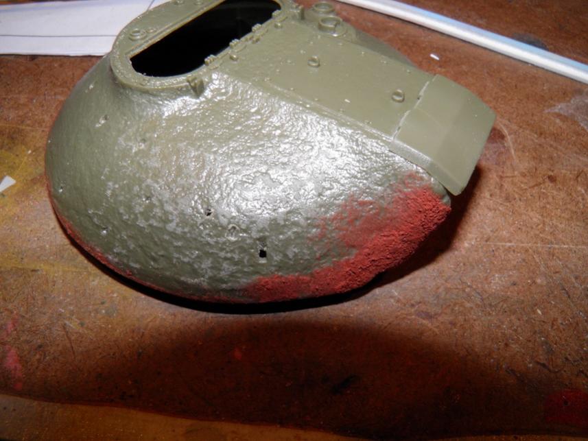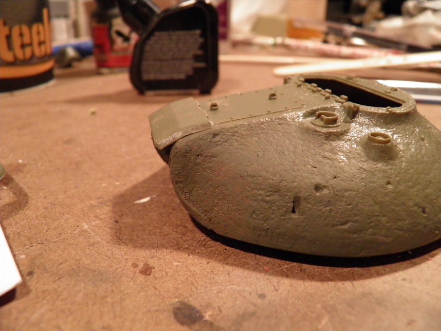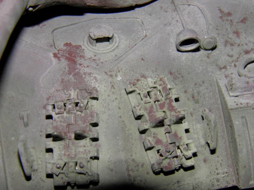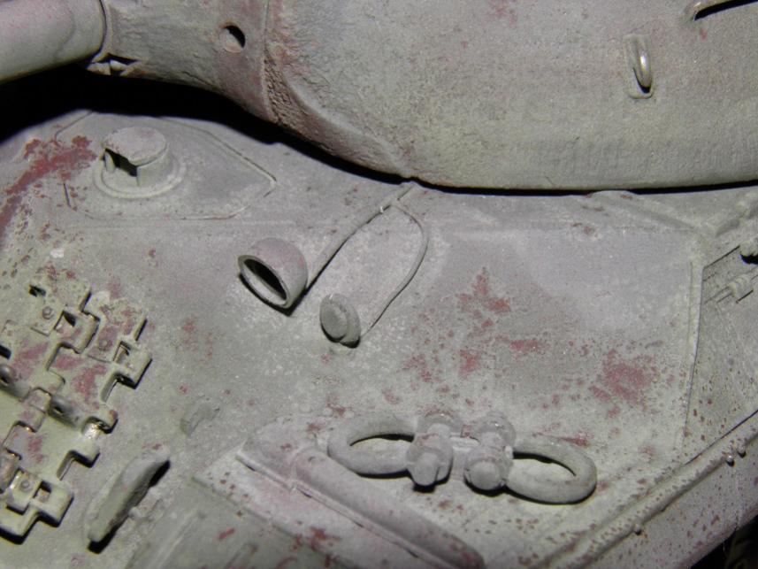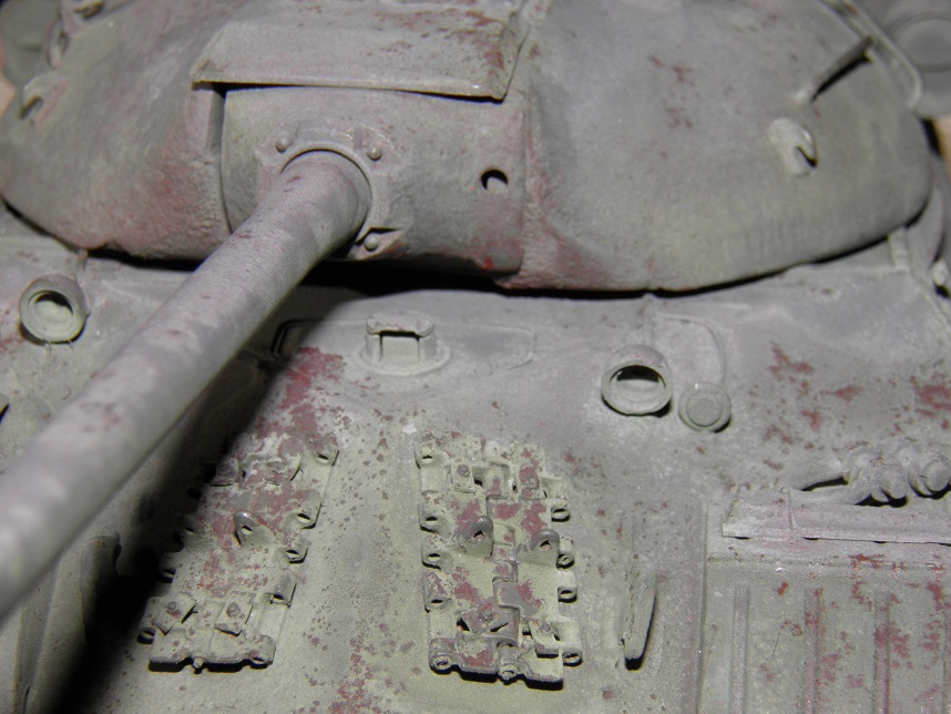 Most of the build was straightforward, and I apologize for a lack of photos documenting it, but there isn't much to show anyway; its a very simple kit. I did use wire for the grab irons on the hull and turret versus the uber-delicate and not-great-looking kit pieces. The turret casting was very good, but I further textured the heavy Soviet cast texture on the turret using Testors liquid cement stippled with a brush and some glazing putty thinned with mineral spirits and stippled. I also spent a great deal of time detailing welds all over the tank. I have some Fruil tracks for it.