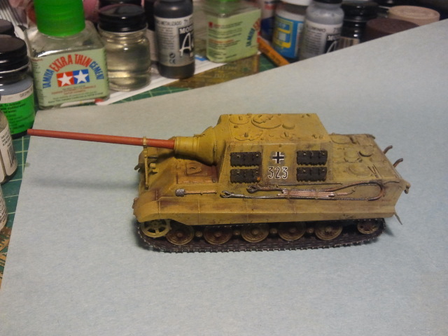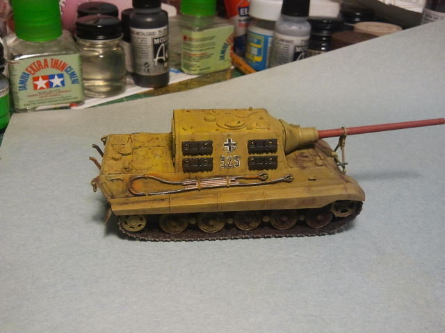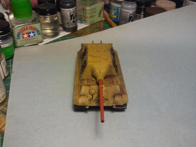 This is the Dragon 1/72 German Jagdtiger Henschel Production with Crane. I can't really recommend it. It's ill fitting, and the engine compartment door is almost a millimeter too small, resulting in a huge gap. It wasn't the only one, but the others could be filled in.