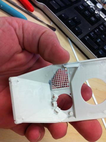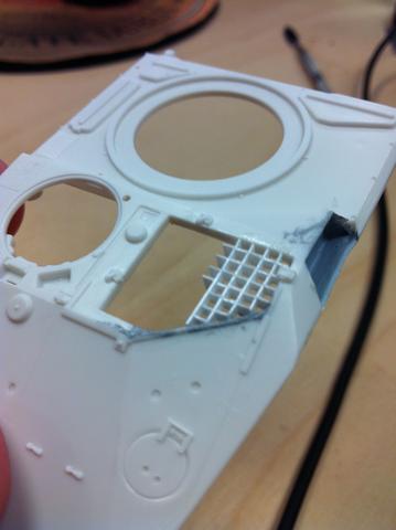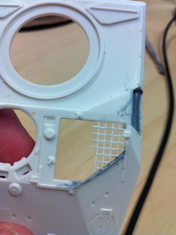 so i hacked it out! and started cutting some evergreen to make my own grill. looks a bit off here but i fixed it: