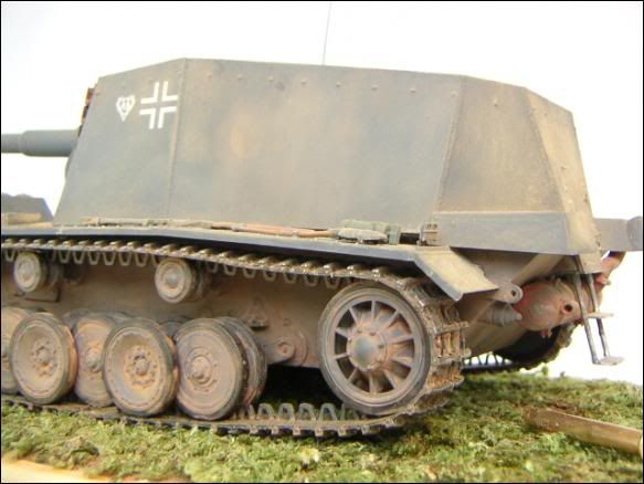 One thing I'm not happy with this model, are the spare tracks. They are far to red and shiny. (Been to lazy to do anything about that :lol: ) The tracks are the kit ones and I didn't succeed in making them sag.