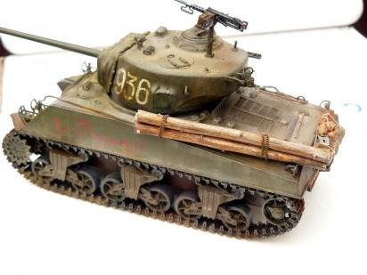 This one is Dragon's Lend-Lease Sherman. Apart from raising the welds on the hull a bit this one's OOB. It was a test-bed to try out a few - new to me - painting-techniques.