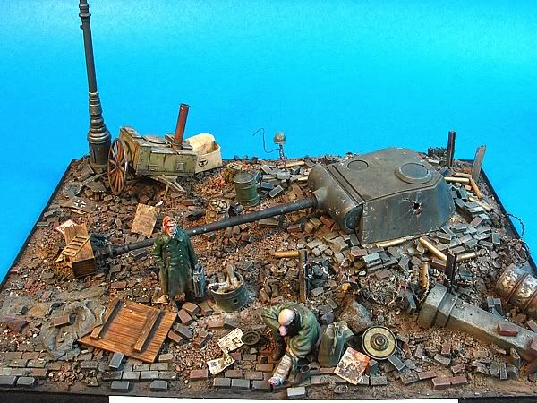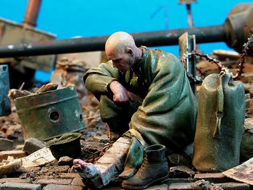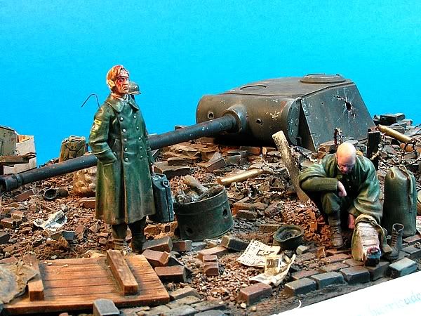 My dio is set on the first day after the surrender of Berlin. There were still fanatical units fighting on and the situation was very confused. The two fugures are waiting to join a column and head east to the horrors that await there.