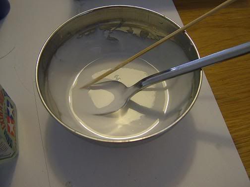 In a metal cup i make a mix of the rubber and hardener. With a spoon i mix these two. When you're done making the moulds just leave the rest of the rubber in the cup. When it's dried you can pull it out. As you proberly make to much rubber for the mould(i always do) make sure you've got a few parts ready for making moulds. It's a waste to throw away that rubber. And if you've go a part wich is not completely covered with rubber....no problem, when it's dried you can put new rubber on top of it.