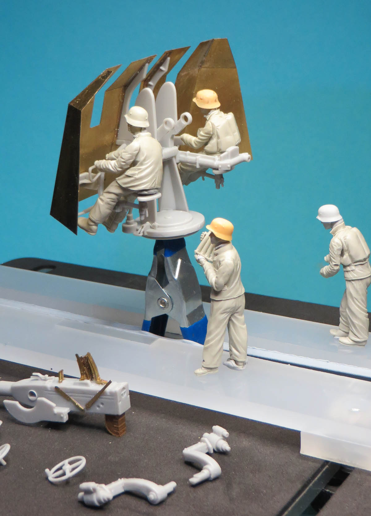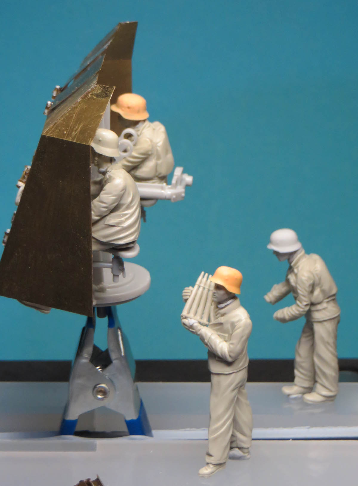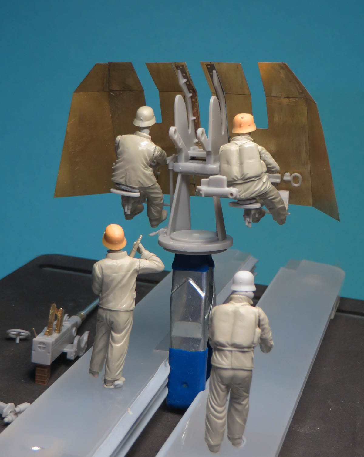 The Flak 42 gun crew are now test fitted in place.