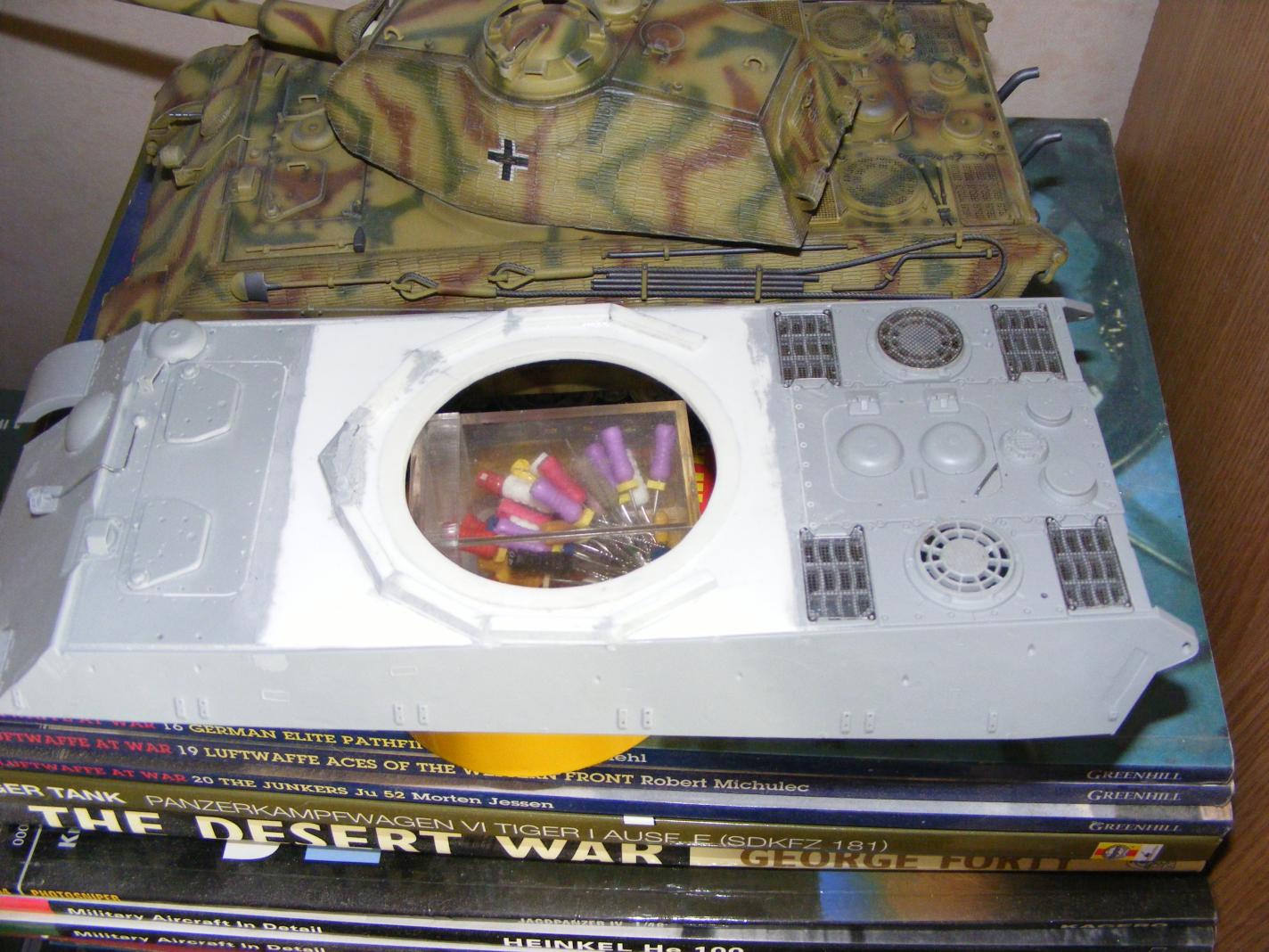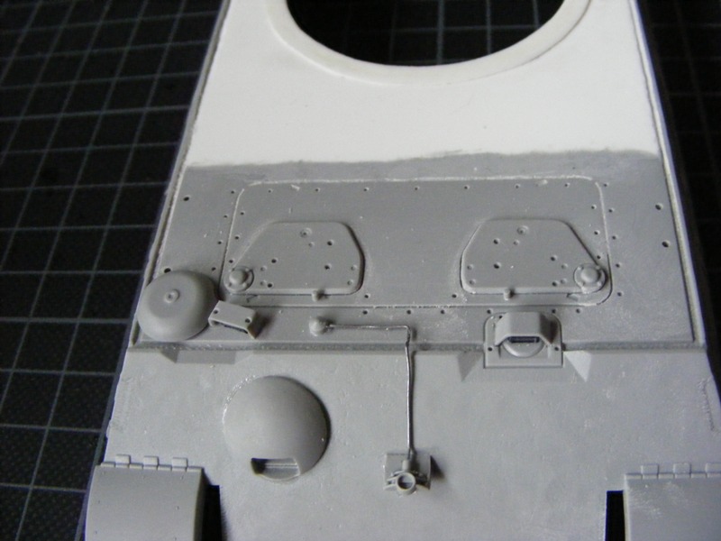 Some time ago, a friend of mine has ordered a DML Porsche Jagdtiger and to his surprise he found that the hull tub was missing. After failed attempts to get the missing part I promised that I'll build one for him. In the spares box we have found a incomplete "Porsche" turret for an older issue DML Kingtiger (both the Porsche and the Henschel turrets were actually designed and built by Krupp). The kit was messed up as it was, so there was nothing to lose.