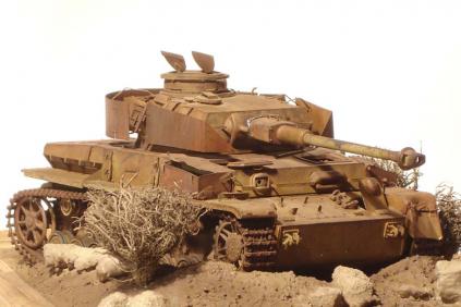 I would like for you to describe the model panzer which recently I finished. It is my second model I carried which out. He is describing the Pzkpfw tank IV used by Syrian armies in the Six Day War. The diorama is describing the wreck being up till today on the Golan Heights in Syria. The state of the wreck is presented from 2008.