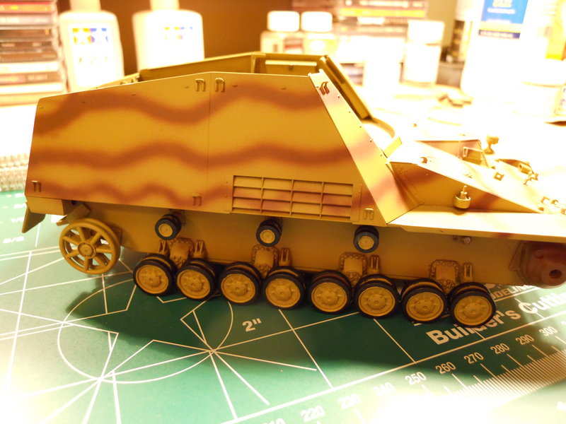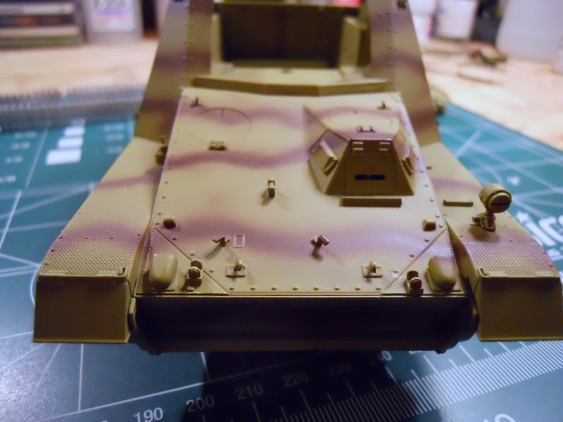 Hello, this is basically a test to get familiar with starting a vBench post and to get back into building. I started this tank 2 years ago, and after an unwanted break I am finally able to start at it again! It is sprayed Tamiya Dark Yellow (XF-60), with Red-brown (XF-64) Camo stripping. This is a depiction of an early Hornisse from 2./s.H.Pz. Jg.Abt. 560 in the early stages of the Kursk offensive. It will be built straight from the box with no accessories added. As of now the hull, gun asy, and tracks have been built and painted the base coats with mat sealer applied. Weathering and detailing are also still needing to be completed, with only a small amount of washing done in the cab. I welcome any constructive criticism, and please feel free to give me some pointers (I have tons of reference, but always welcome more)!
