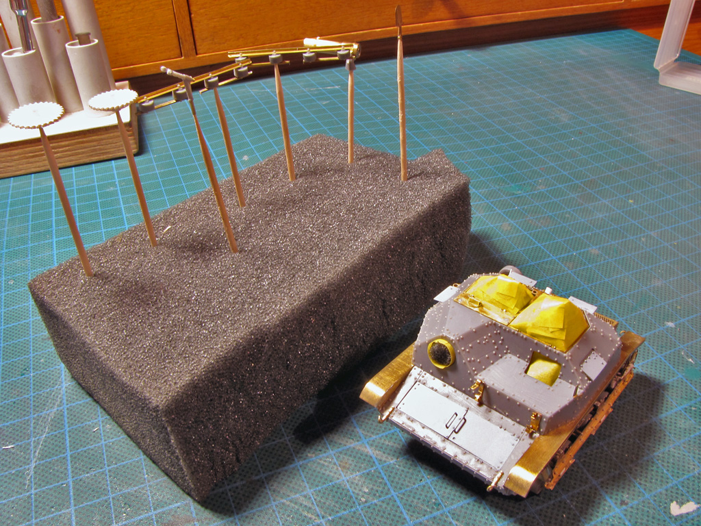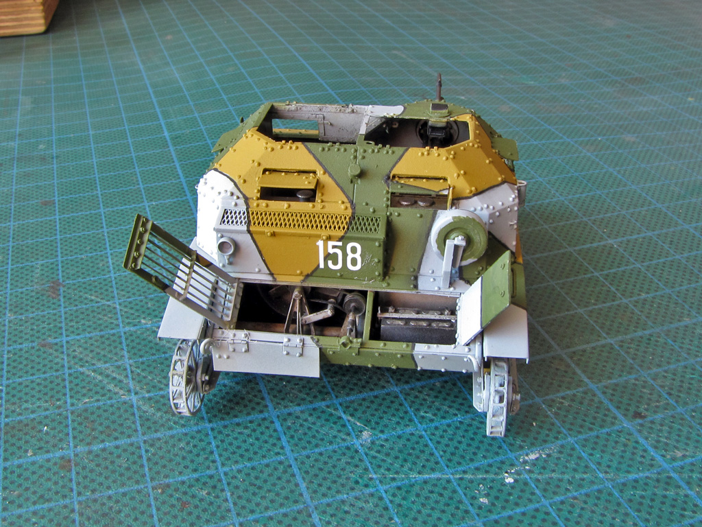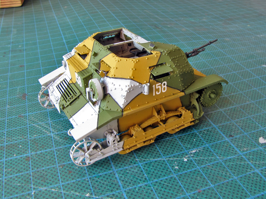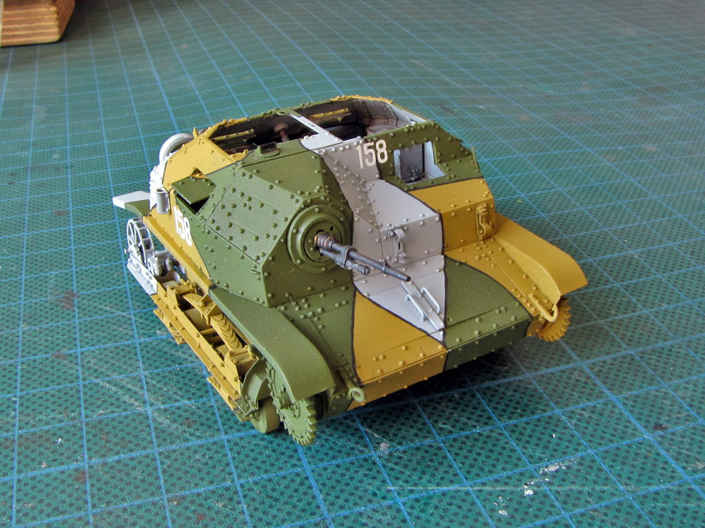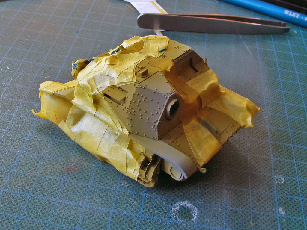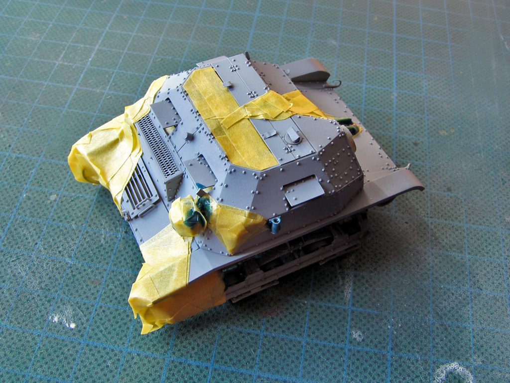 The camo of mine is so called japanese style grey-yellow-green scheme polish used in mid 30's. Estonia got its vehicles in 1936, it had the same camo and estonians never painted it over. So after grey there was a bit more masking: