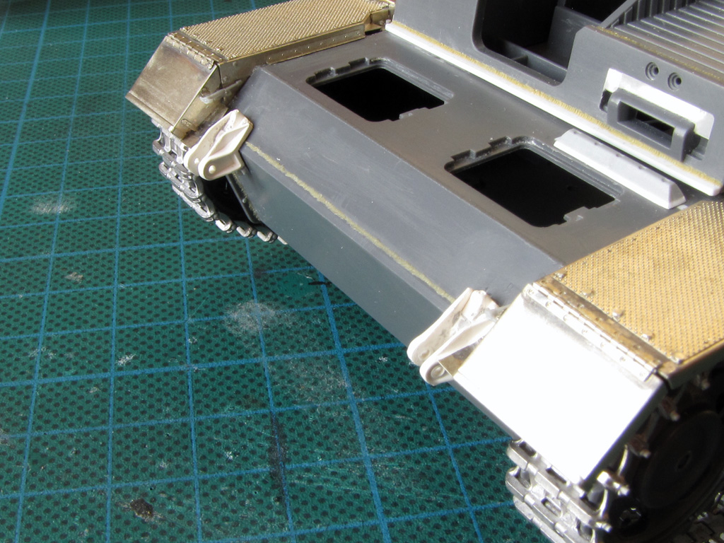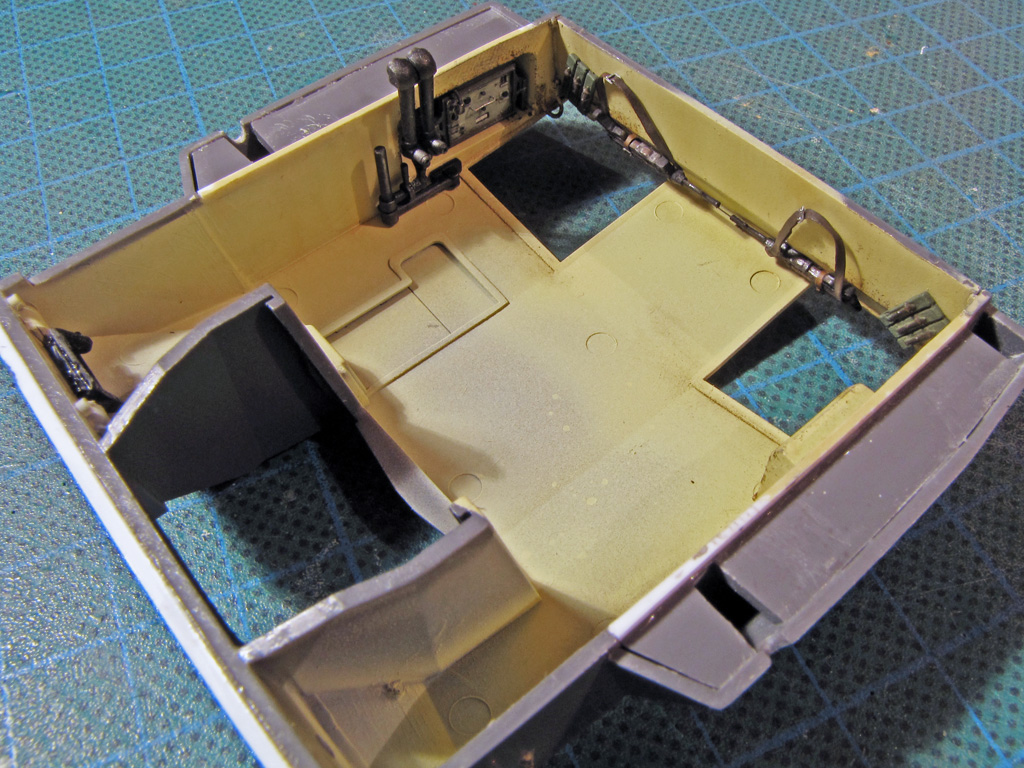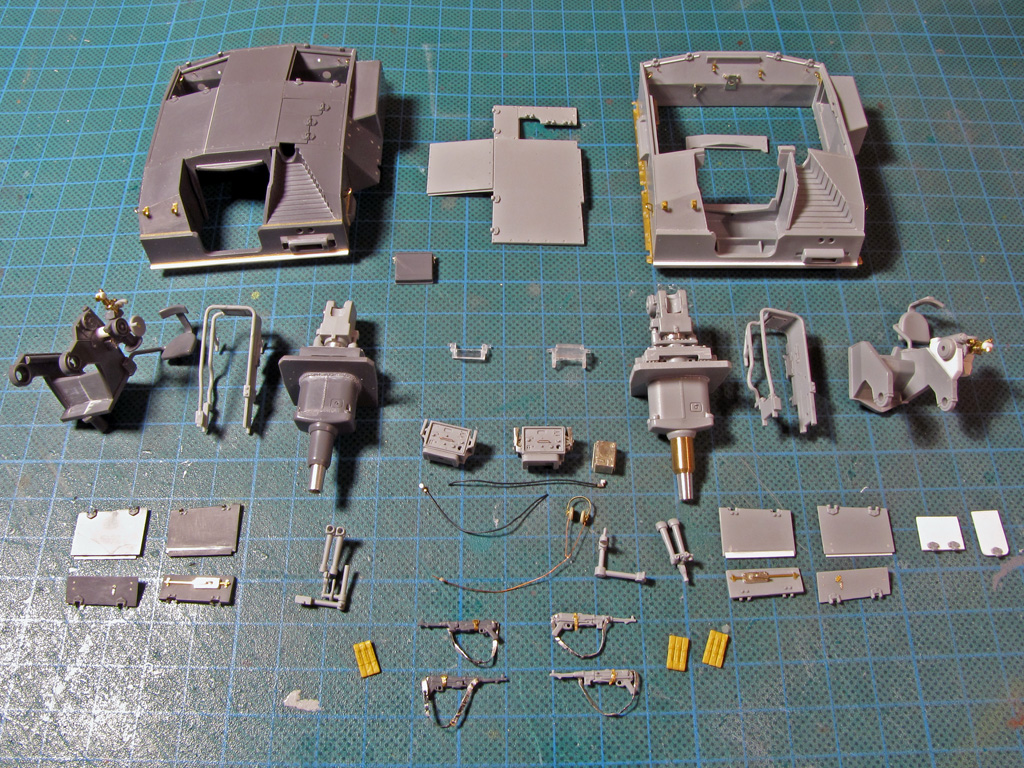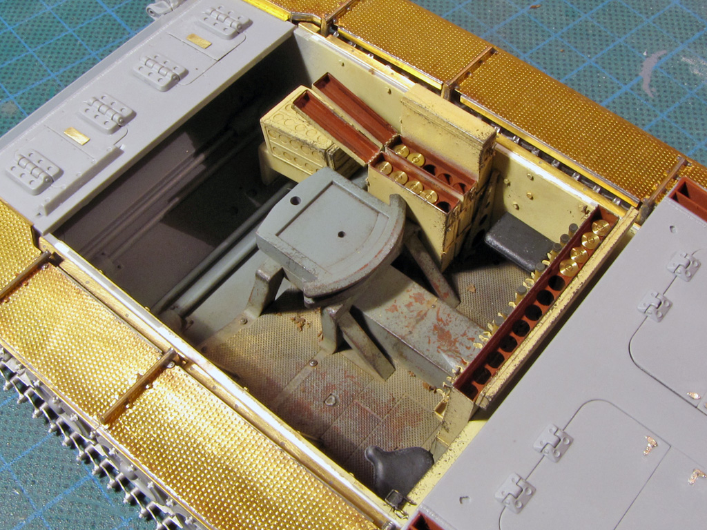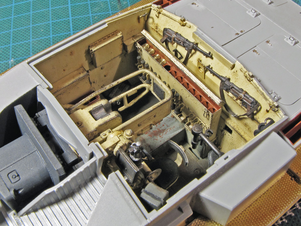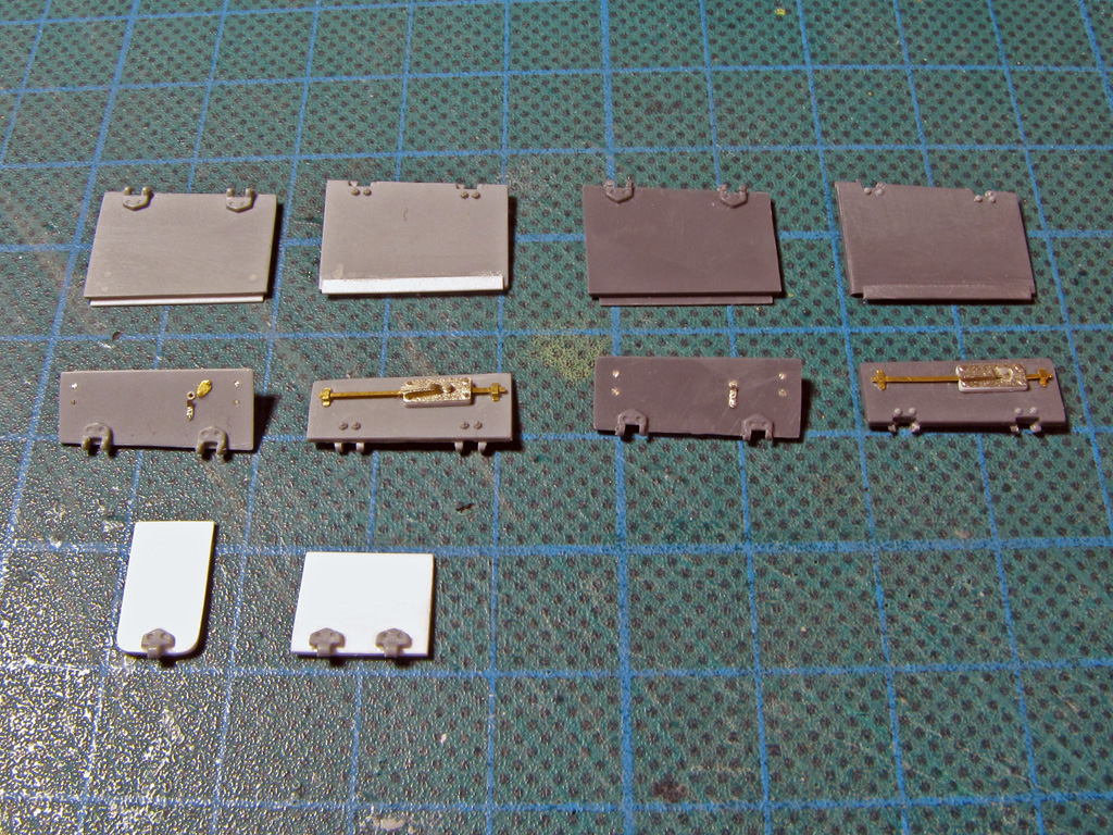 The hatches on both had some detailing added. I tried to drill out all the hatches to make them movable - on Dragon it went alright, but Tamiya hinges were a bit too small and not well molded out for this purpose. Dragon had the smaller hatches above the sight shut closed, so these too had to be cut out and to be replaced with homemade styrene ones. On Tamiya I just glued these hatches shut and didn't bother more.