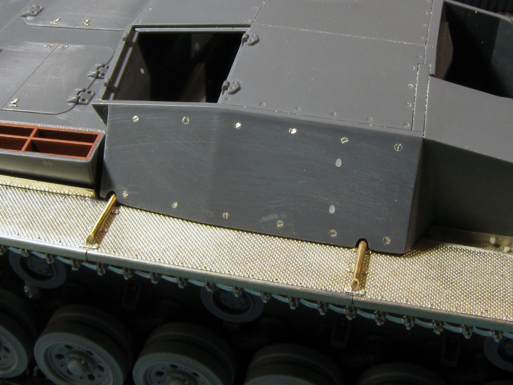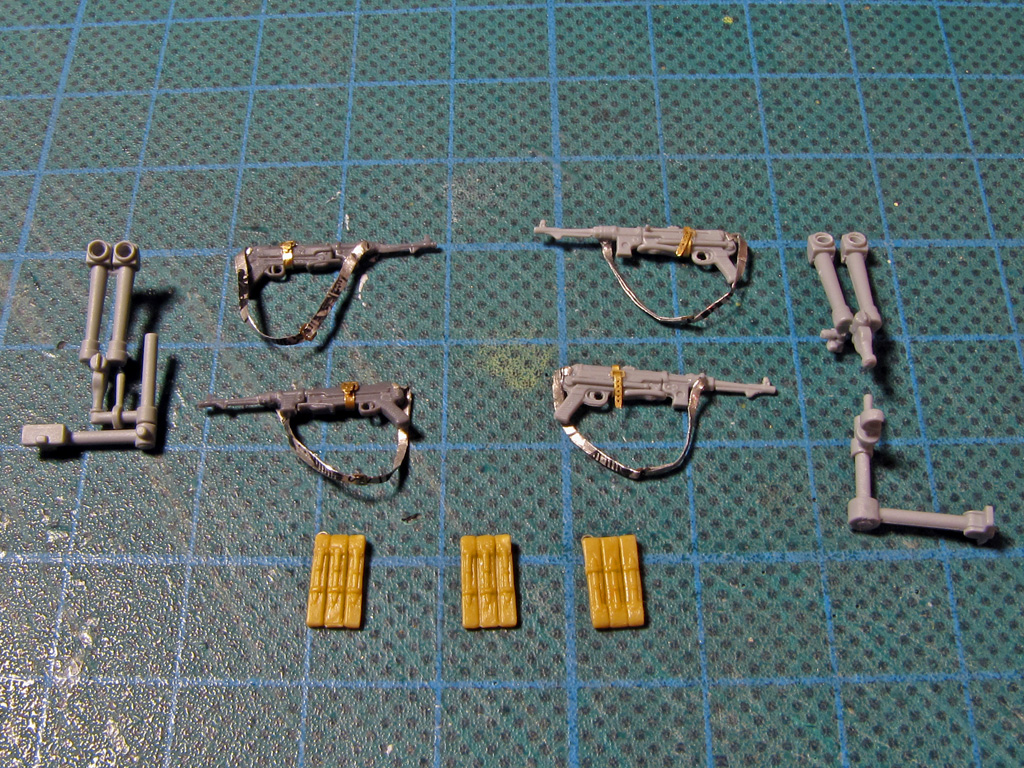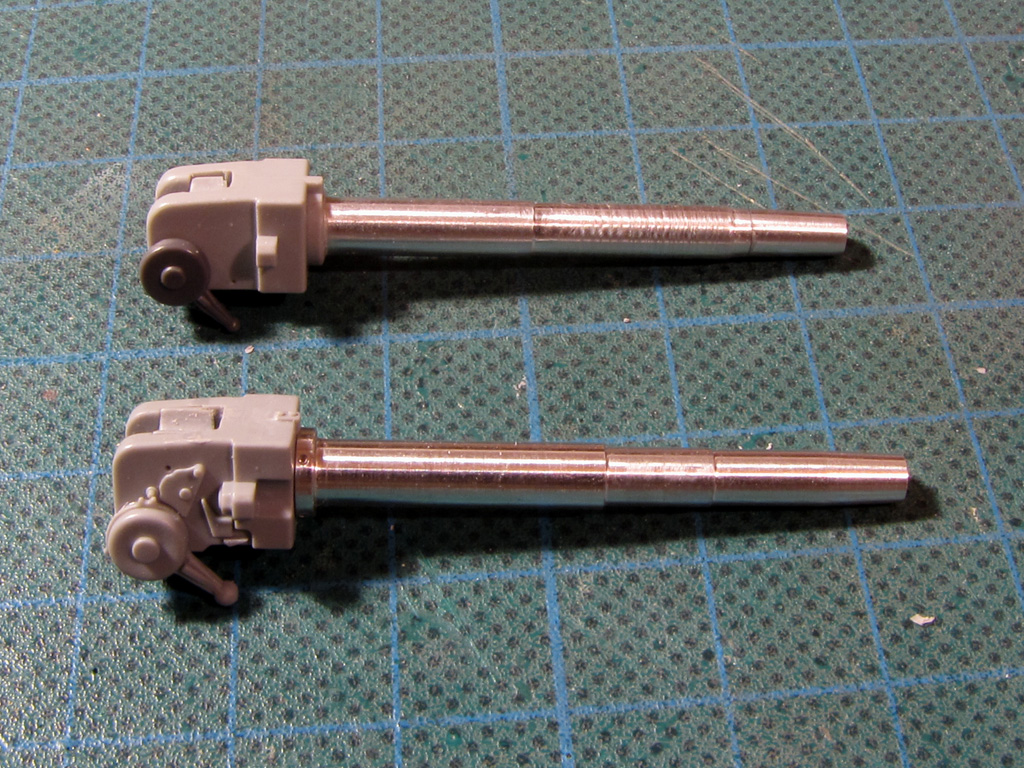 MP's had the holes drilled in the barrels even though they aren't to be visible. Using tin foil I made straps for all of them. Dragon Had two sets of periscopes in the set so again, one goes to Tamiya and the other to Dragon.
