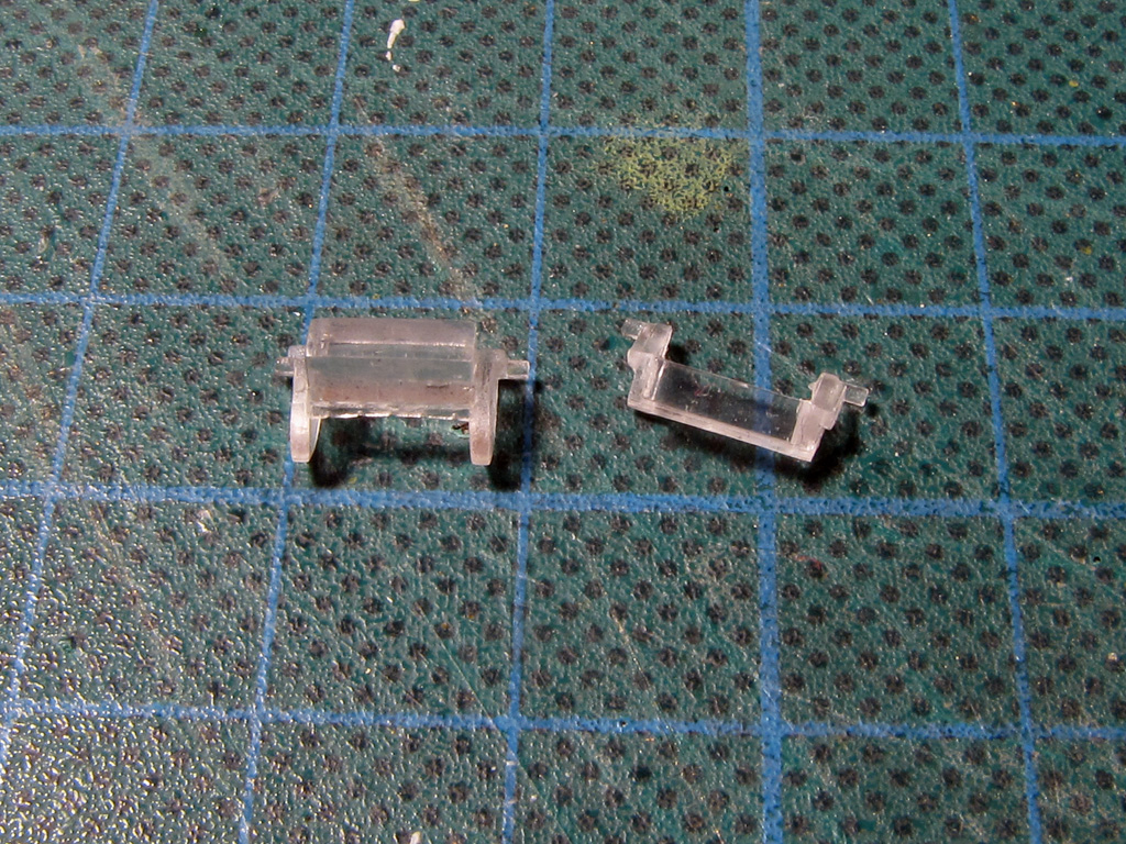For the driver's viewport I found some vision blocks out of my spares box. Both are from random Dragon kits and needed some polishing. The one that goes to the Tamiya needed some cutting as well to make it fit.