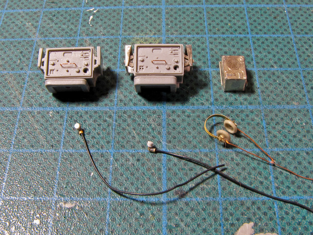 Dragon had pretty decent radio in its box. It even had more than one, so I got one for Tamiya as well. Both radios received some detailing and the one that goes to the Dragon had few additional details from Aber set. The speaker box is provided by Aber as well and the headphones are from K59 set which I found in my stash.