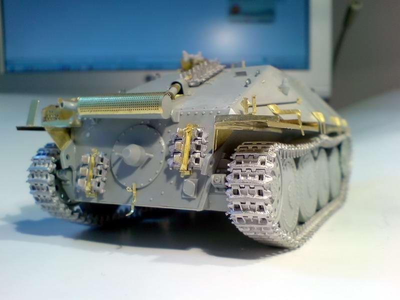 Here's some photos of one of my projects. A Hetzer built from DML kit with sobe Aber photoetch and Friul metal tracks.