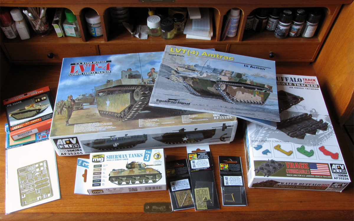 I'm starting a new thread with a model I've been building a while now. It's AFV Club's LVT-4 Early version with few extras such as Voyager basic set, Eduard interior set, Aber metal barrels for machine guns and AFV Club aftermarket tracks.