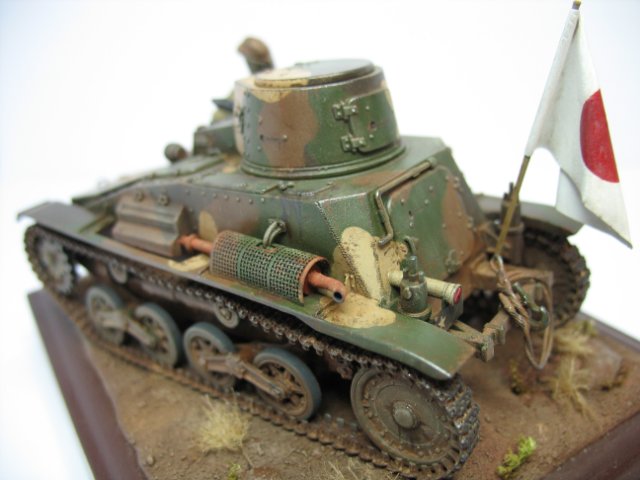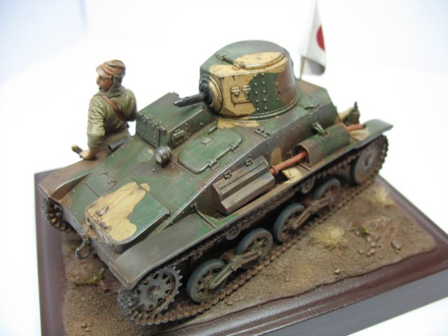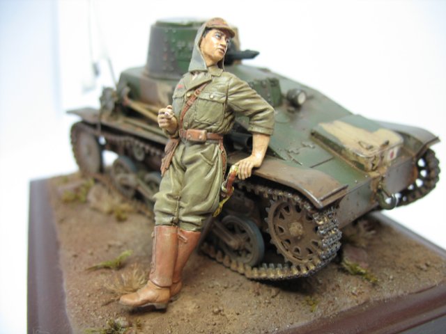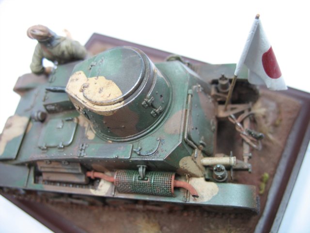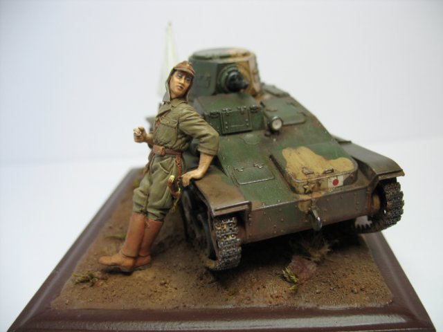 One of these days has finished the next model Type 94 TK late (Fine Molds). As a platform sole very small, I have decided to complicate a little work and the small diopama has turned out. At construction TK used траки Modelkasten. A figure of the Japanese officer – Allarmy (resin). The flag has made of a lead foil.