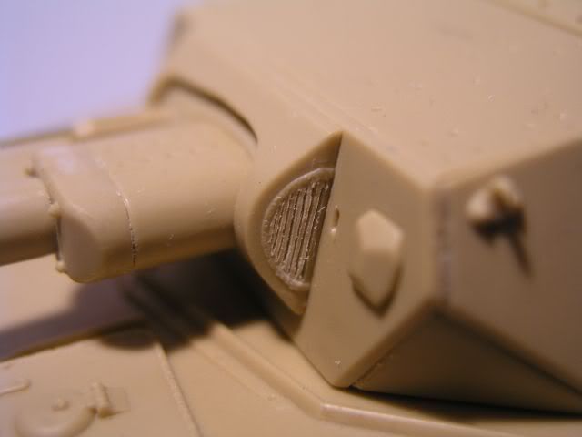 One of the major ommission of the Tristar kit is the lack of ribs on the mantlet. I think this is because of moulding limitation. I scribed the ribs on the sides of the external mantlet. It was quite difficult to keep a steady hand. Next time I will replace the sides. I also added the antenna deflector from brass rods. I am not sure how long it should be and kept it longer in case I need to cut it.