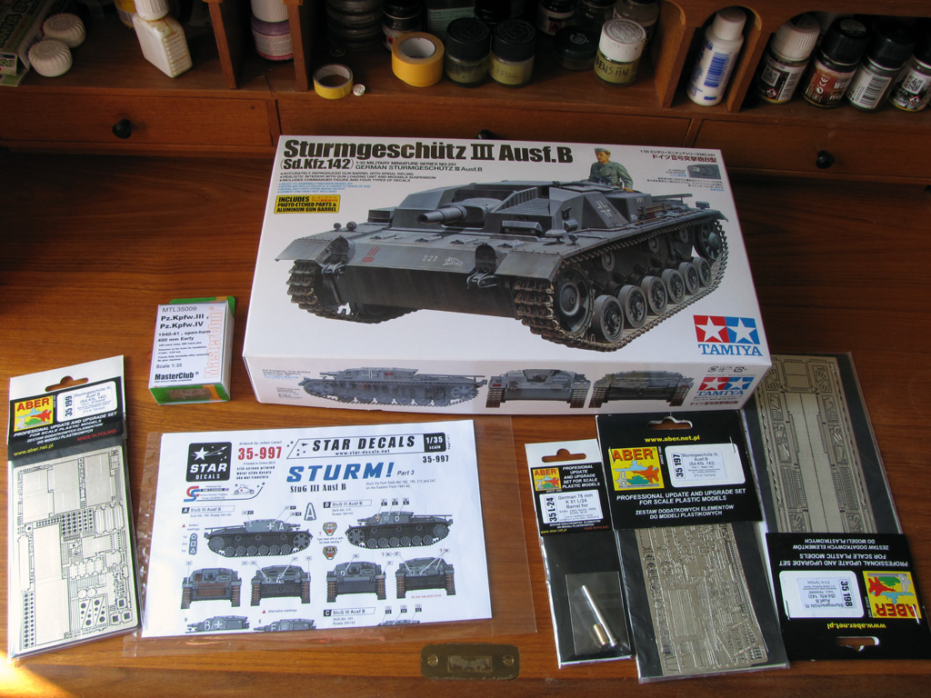 My next thread will be StuG III Ausf.B. I have chosen Tamiya kit for this one and since I have few leftovers from Dragon's Panzer III family kits I've built before, I use them wherever I can. I have few Aber upgrade sets also to use and aftermarket decals, as I'm going to one of the StuG Abt. 185 vehicles.
