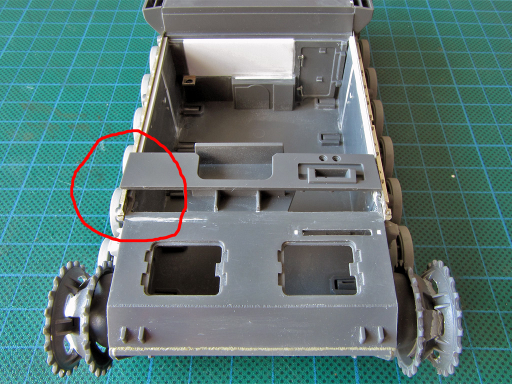 I'm not very happy with the Tamiya kit, but there are not many options when building Ausf.B. Bolts are rounded and need to be replaced, weld seams are often missing and need to be reproduced, fit is loose and need a lot of filler. But main problem with this kit is that upper hull, when removing the molded fenders, appears to be 1mm wider than lower hull. I really don't know what to do with that yet. Here is the front driver's plate compared to hull: