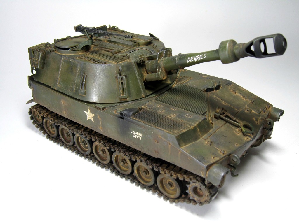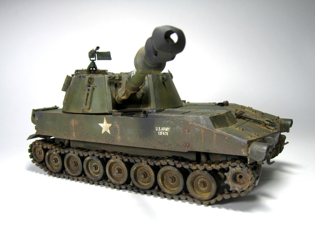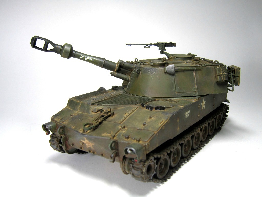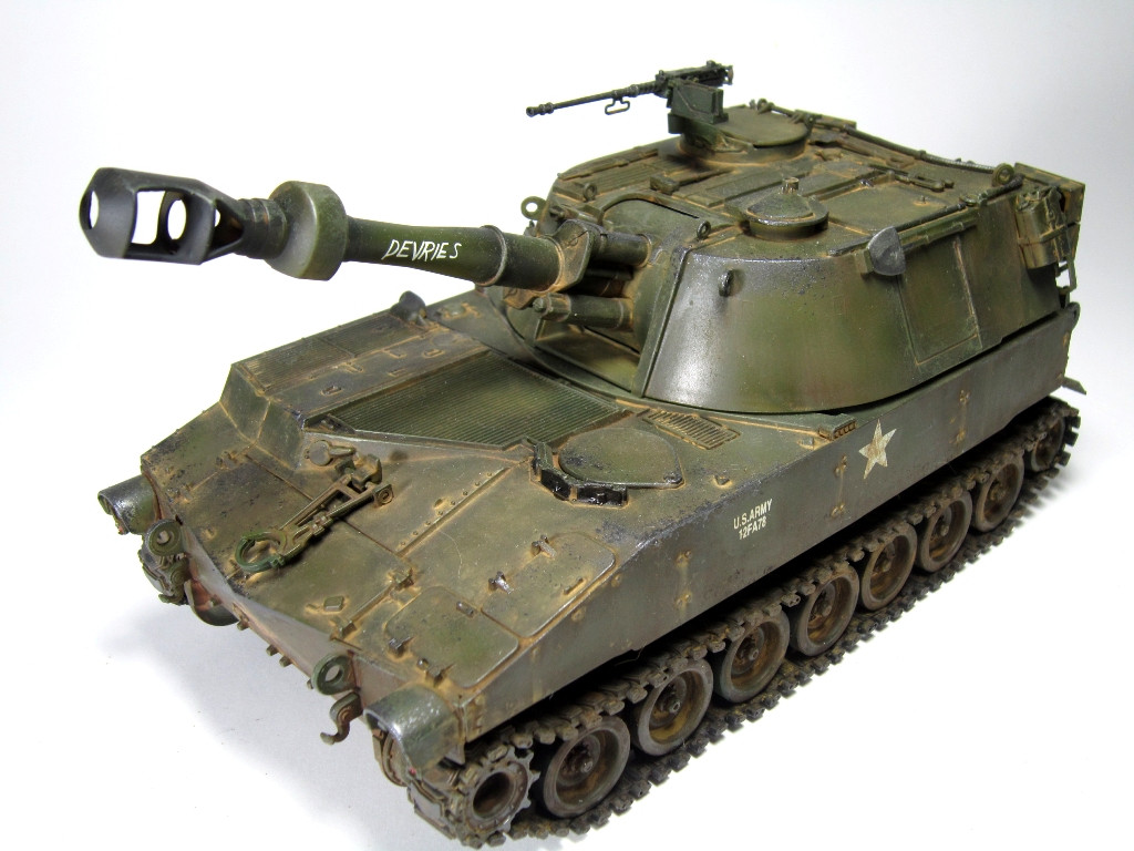 Hi all,this is my first kit i build in 2013.Although it isn't excellent kit,it's good kit about M109 in vn,but I use M109 AFV tracks because italeri tracks are hard and breakable.I painted it by mr color (C304 mix C54),weathering by pigment
