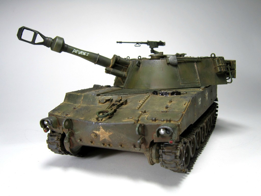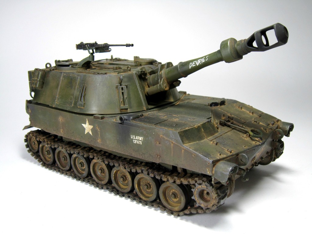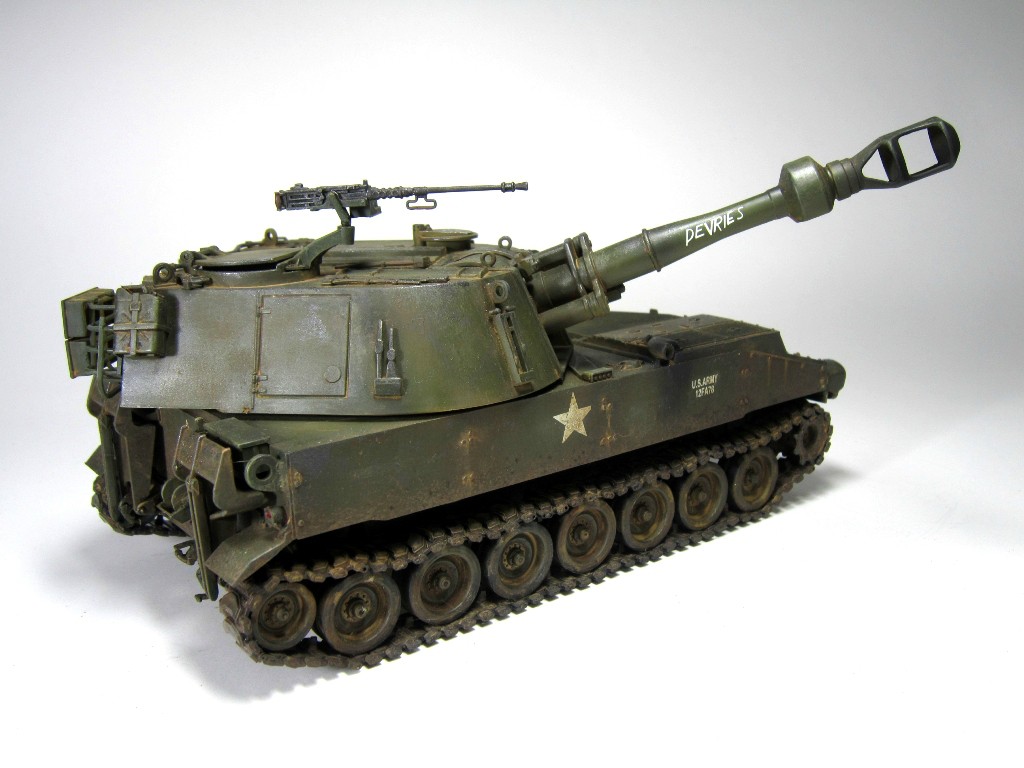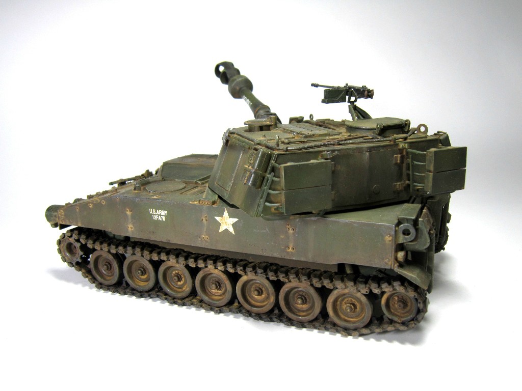 Hi all,this is my first kit i build in 2013.Although it isn't excellent kit,it's good kit about M109 in vn,but I use M109 AFV tracks because italeri tracks are hard and breakable.I painted it by mr color (C304 mix C54),weathering by pigment