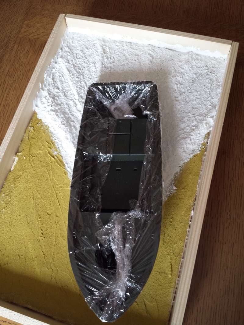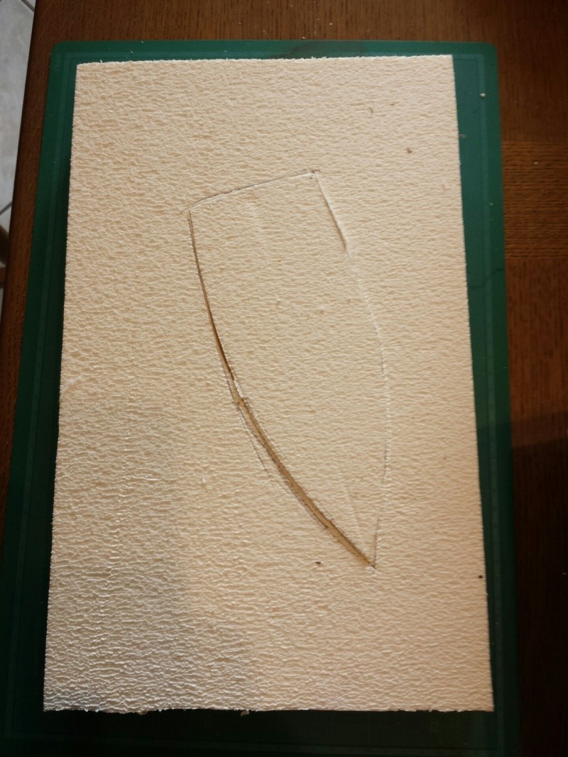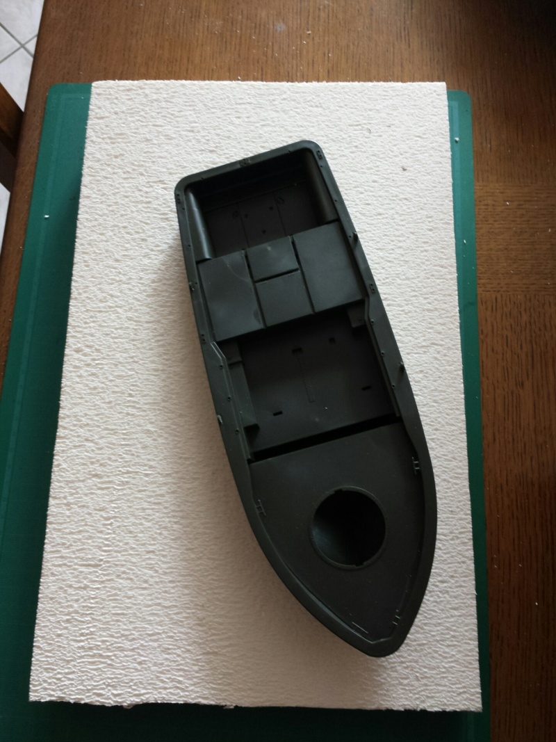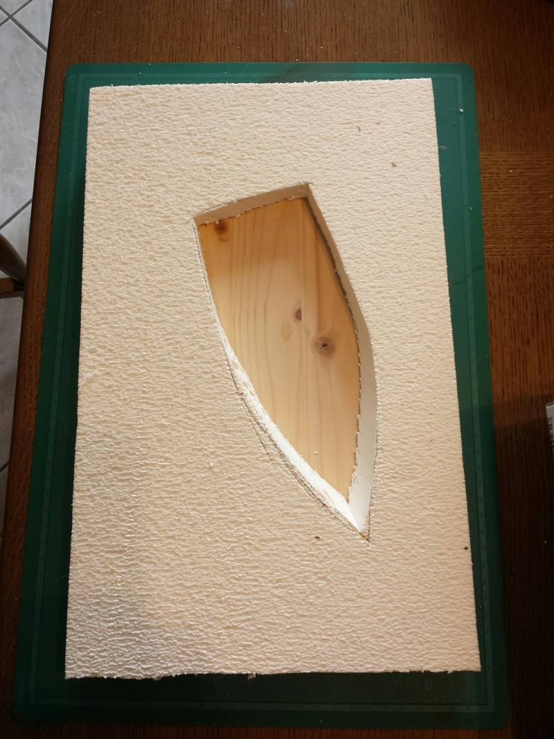 I used 2 cm thick styrofoam as a base, avilable at DIY shops, in which I cut out the Pibber shape, taking care of how I wnt the boat to properly fit (angle in the water)