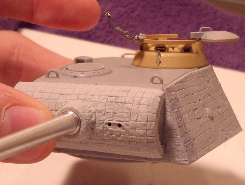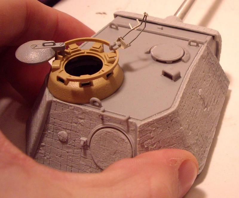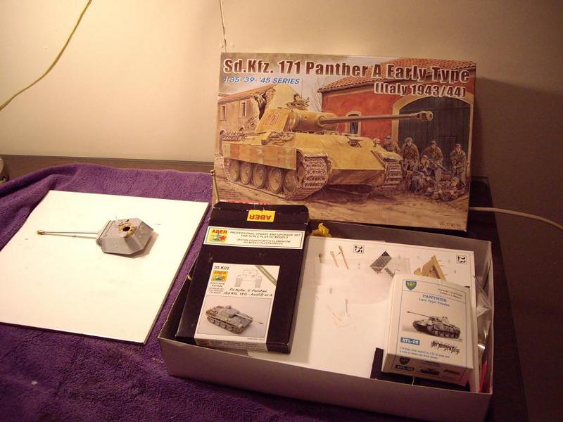 Ok guys, I've posted some other stuff that was either completely finished or the build was finished so I'm going to do this one the right way even though I've already completed some of the grunt work and it will take me forever to finish as I am notoriously slow. Anyway, I am working on the Dragon Early Panther A kit with the Aber superset (rediculous), cav zimm and friul trax...... I will start with the turret which I have already done a lot of the work on. First step is obviously to add the zimmerit coating. Cav is a bit of a cheat I suppose but when properly applied, this stuff looks great imo. The key is a seamless application. I attach the stuff with CA glue and then go around all of the visible edges repeatedly with CA glue and sanding until the seam between the hull parts and the zimmerit resin is eleminated. I will then go back and attend to the zim to zim joints with CA glue, putty and mr. surfacer until they look presentable. Once I feel that it is all in order, I go back with the airbrush to check the joints before proceeding any further. Once the PE goes on, all bets are off and there isn't much room to work to correct basic mistakes like these. Just wash the paint off with some windex and zim is done...... I have done my own zim on occassion but for this particular patter and ones like it, I find it especially difficult to come up with anything that I would be happy with. I have used the aber barrel from the superset and as you can see, it's a real beauty. I forget how many parts it has but it was a lot for a muzzle break! I have used the tamiya cupula just because I had one in the spares box and I like the texture better on this one than the dragon piece. I went over the hatch with some mr. surfacer to make it blend with the cupula a little better. I have added welds to the vision port cover. This is something everyone does a little bit differently so I'll share my method. I actually tape off the part leaving only the weld area showing with masking tape and then apply squadron putty with my hobby knife. It dries very quickly so you can work it with a piece of plastic, pin, blade etc. to get the desired look with little effort and in a short time. Just my two cents on welds, there are many other ways that probably look better but this is what works for me. I am going to mount spare trax all over the turret and am going to attempt to wrap the barrel in chicken wire! I also have a really nice Mori figure picked out for the commander. Maybe a base with other figs, who knows? It always starts out in grand fashion and by the end it manages to become much less ambitious. We'll see how it goes but this is where I stand at the moment. I havn't decided for sure what vehicle to make this into so any thoughts would be appreciated. I may have to take some artistic license with this one since they are somewhat limited in references. Any pics, references or ideas would help....