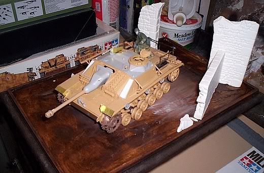I am interested in doing the one in the photograph below but only because it has all the late features and has that cool weathed number 20 on the front. Any ideas on the coloring and cammo?If I go ahead with this I will have to change the shield mounts and add the armoured hood over the driver's vision port.anyone has any other cool shots of final Stug 3's or some color profiles I would be greatful if they could post them.
