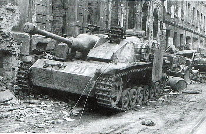 Caption reads : StuG 40Ausf G assault gun from the Panzer Sturm Reserve in Poznan Feb '45